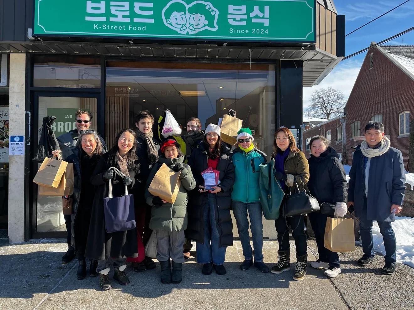 Miembros de AAPI-NJ y amigos sostienen bolsas con compras en negocios locales en solidaridad con Palisades Park, tras los arrestos de ICE. Mary Ann Koruth